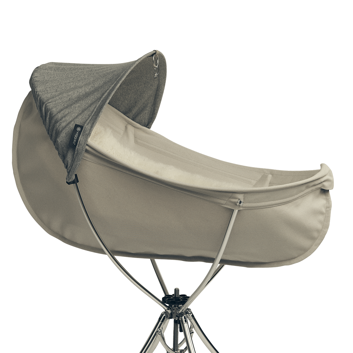 Installez facilement le pare-soleil sur votre nacelle ou transat Vaggaro®. Un porte-clés est placé au centre de l'arche pour vous permettre d'y accrocher un jouet léger.